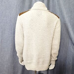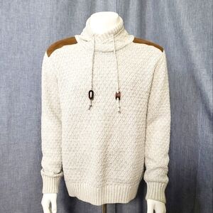 X-RAY Shawl Collar Pullover Sweater Faux Suede Shoulder Patches Oatmeal Men's M