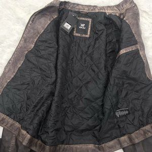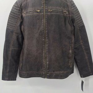 XRAY Men's Slim-Fit Washed Faux-Leather Brown Moto Jacket - Size X-Large