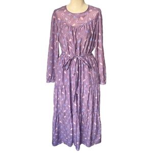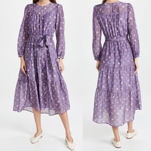 XÍRENA Misty Silk Cotton Blend Midi Dress in Plume Print Purple Medium