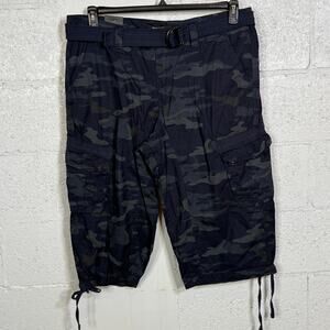X-Ray Men's Belted Capri Cargo Shorts - Navy Camo 38w x 18inseam $58