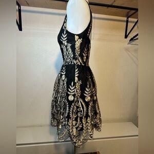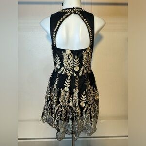 XS Altar'd State Dress Womens Small Black Gold Embroidered Floral tulle teacup
