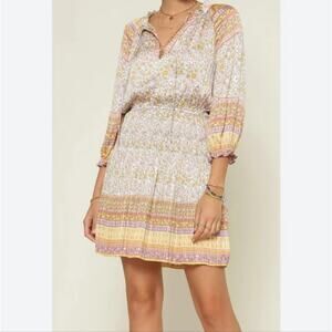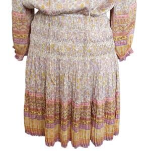 XS Anthropologie Current Air Boho Pleated Floral Peasant Dress, Off White, Yellow, & Pink