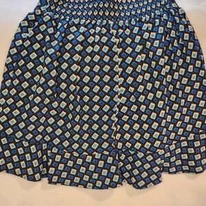 Stylish top with a geometric pattern. Features a ruffled hem. Perfect for casual outings.