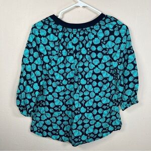 XS CROWN AND IVY TEAL BLUE SEASHELL BLOUSE HENLEY TOP BOHO LIGHTWEIGHT