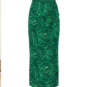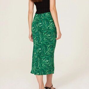 Green mesh (100% Viscose Matter Jersey). A-line skirt. Back zipper closure. 10" slit. Imported.