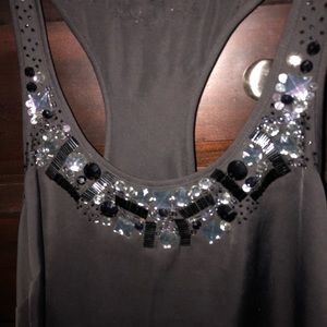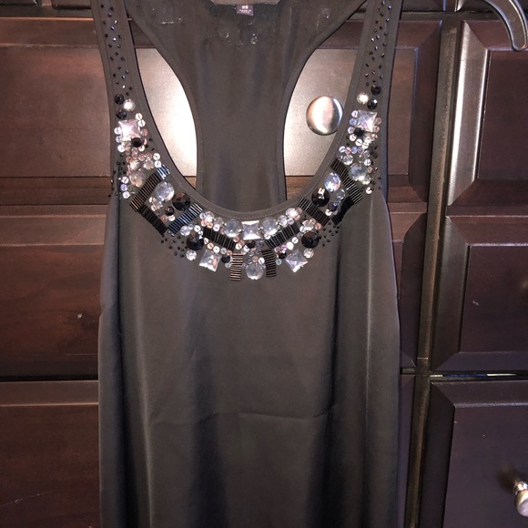 Satin material, only worn once and had dry cleaned. The back offers the same level of detailing as front and provides a more revealing touch by having the racer back style.