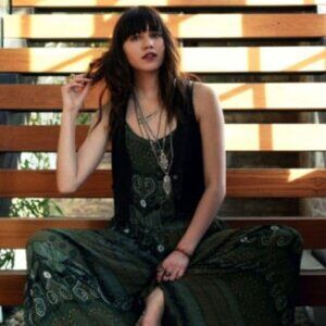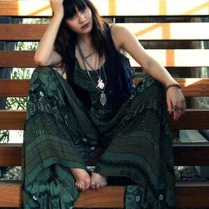 XS Free People NWT Emerald Rust Jumpsuit wide legs dress maxi crinkled