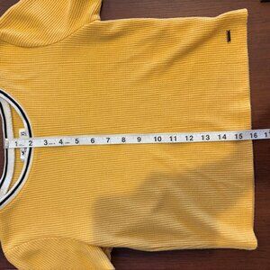 SUPER CUTE LITTLE YELLOW TEE FROM HOLLISTER, WITH A WAFFLE TEXTURE IS PERFECT FOR THE SPRING. SIZE XS