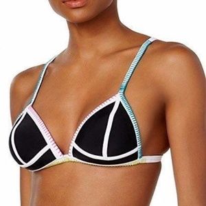 XS Hula Honey Swim Bikini Top Color blocked Triangle Push-Up BlackWhite 1137