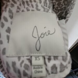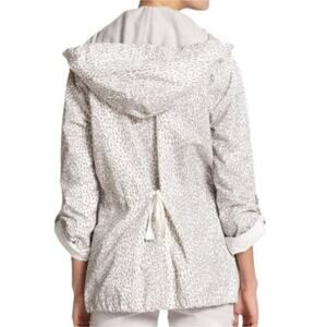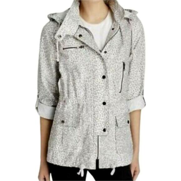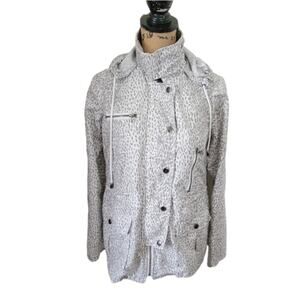 XS Joie leopard animal print white and gray hooded cargo pocket jacket, drawstring hood and waist