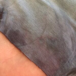 This is a brand new LOVE TANJANE long sleeve shirt. Low v-neck. Gathers in front and back. Amazingly soft and stretchy material in tones of blue and gray. Raw edges. Measures 17 inches across the bust and is about 29 inches in length. Made in southern california and hand dyed in ojai. Price is firm. Thanks for looking.