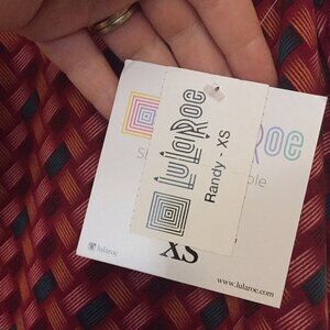 This is a brand new lularoe randy t-shirt. It is a sort of base ball style tee, where the body is one color and the sleeves are another. Cream colored sleeves with deep red background on the body. Sleeves are 3/4 length. Price is firm. Thanks for looking.