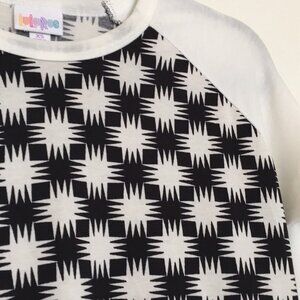 This is a small Lularoe randy tee. It his black with a white starlike pattern on it and white 1/2 length sleeves. Brand new with tag. Price firm unless bundled. Thanks for looking.