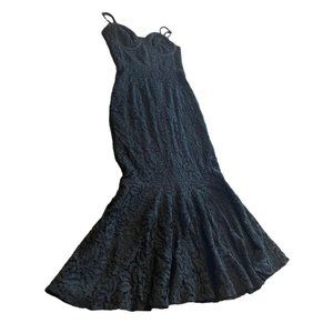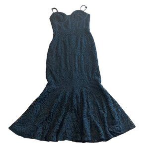 XS Lulus Lined Mermaid Lace Dress Black Adjustable Straps Back Zipper