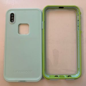 iPhone XS Max case bundle. One is a life proof case, used once. The other is a clear case, also used once.