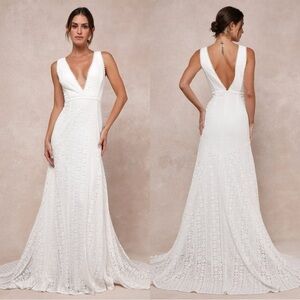 XS - NWOT Lulus Infinite Bliss Ivory Lace Sleeveless Backless Trumpet Maxi Dress