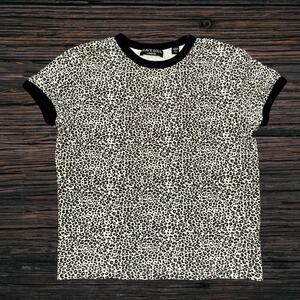 XS Petite Leopard Print Ringer Tee Shirt Cotton Animal Short Sleeve Soft Summer