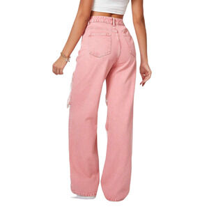 Features: Pink, Ripped, High-Waisted, Wide Leg
