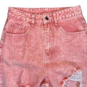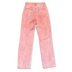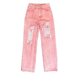 XS Pink Ripped High Waisted Wide Leg Jeans Retro Acid Wash Denim Pants