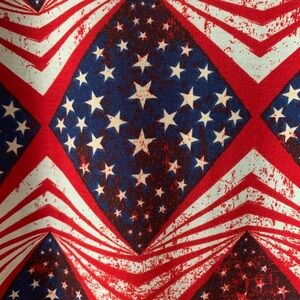 XS Red White and Blue Stars and Stripes Dress. Short sleeves. Mid length. Lots of stretch. Excellent condition no flaws.