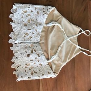 Perfect for a Hawaii or Palm Springs. Two Piece floral set with nude lining. Top is crop with adjustable spaghetti strap. Skirt is pencil and sits high on hip. Nude lining is reversed sewing construction. Lace is scallop and extends past the lining at both top and bottom. Zipper on back for both top and bottom. Fit is snug. Here are my measurements: B: 32 W: 25 LHip: 36 H Hip: 32 at 5’6"