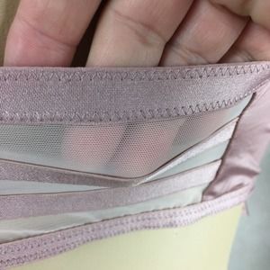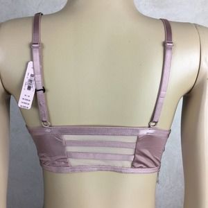 Pink and sheer mesh Panel bralette by Victoria’s Secret. New with tags. Pull over head style and comes with light padding that can be removed as adjustable straps. This style is underwire free and has been discontinued by VS and will soon be impossible to find. The tag shows a medium but all I have left are the XS.