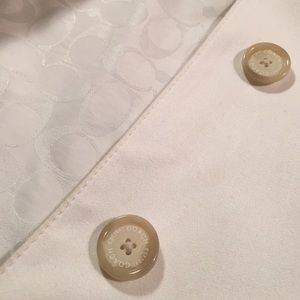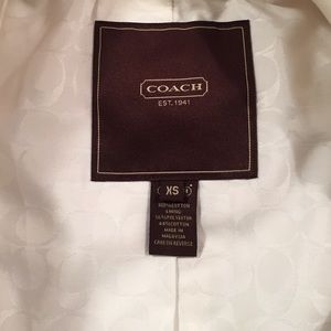 White Coach Raincoat Size XS; lined with "C" coach monogram; minimal wear around collar; comes with original protective hanging bag