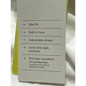 Garment Details: Adjustable Strap, Flat Seams, Moisture Wicking Fabric, Quick Drying Fabric, UPF 50+ Sun Protection