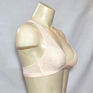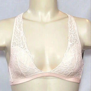 XS X-SMALL Xhilaration Deep Plunge Wire Free Lace Bralette Feather Peach NWT