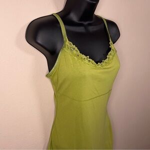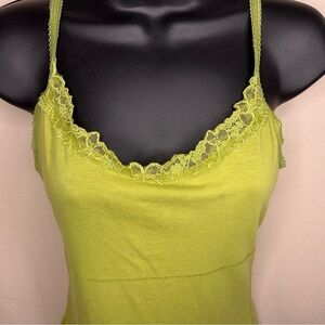 XS Y2K ERA LIME GREEN TANK CAMI LACE ACCENT STRETCH SLEEVELESS TOP