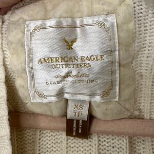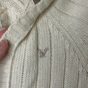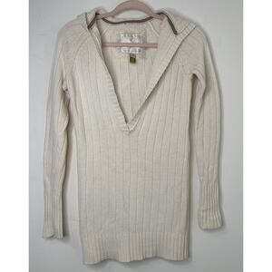 XS Y2K VTG American Eagle Ivory Ribbed Deep V-Neck Hoodie Sweater Elena Gilbert