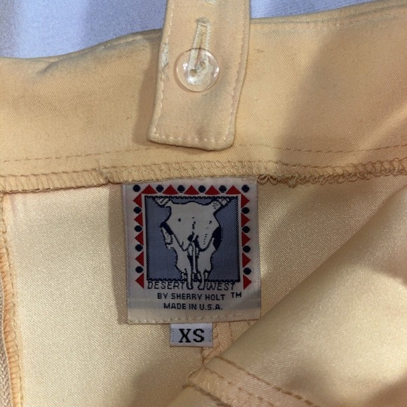 This is a structured bustier blouse tank top designed for women. It features a sweetheart neckline and comes in a bright yellow color. The brand is Desert West and the size type is regular. The size available is XS. The straps are adjustable