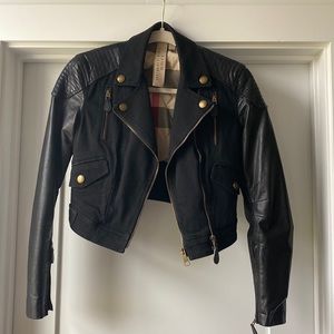 Black leather and denim Burberry jacket. The perfect jacket in any weather. In pristine condition, only worn a few times. A true XS!