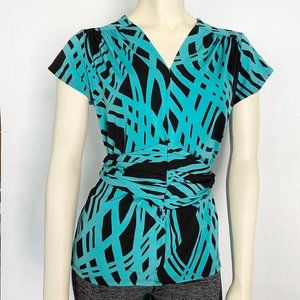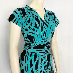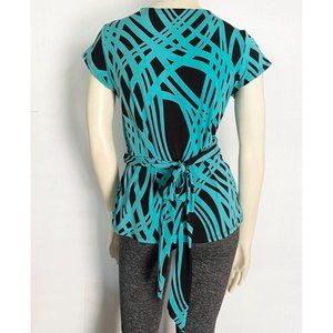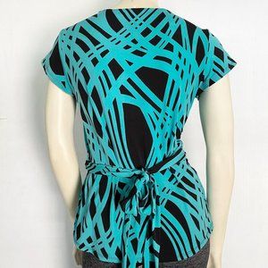 XS blouse Vtg. MARc BOUWER KNIT TOP, POLYESTER SPANDEX, V NECK, CUMBERBUND TIE