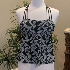 XS or S NWT Hula Honey Black Maze Muse Halter Tankini Top Black White