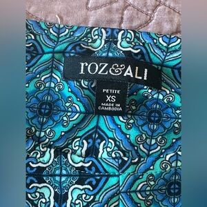 Roz & Ali XS peplum patterned top. See photos for measurements. Excellent condition, only worn a few times.