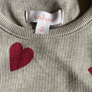 XS Grey, heart, ribbed, cropped pajama tank.