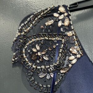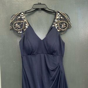 XSCAPE Beaded Cap Sleeve Navy Gown Size 8