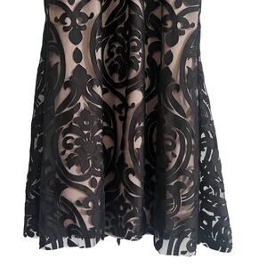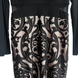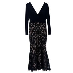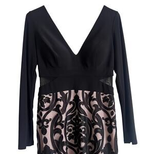 XSCAPE Black Lace Long Sleeve Formal Gown 8 Maxi Dress Sheer Waist Homecoming