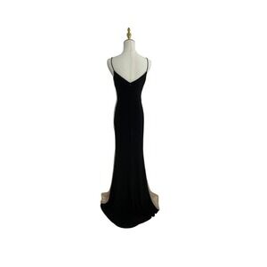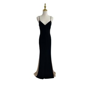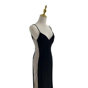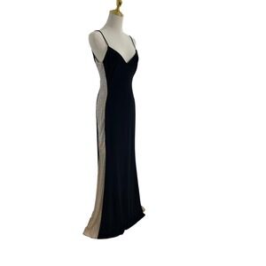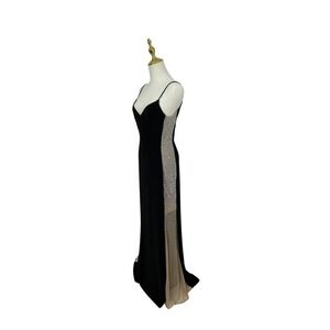 XSCAPE Black Nude Jersey Slip Dress Beaded Illusion Side Panels Size 6 NWT