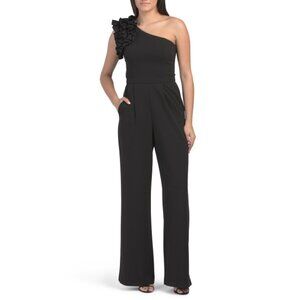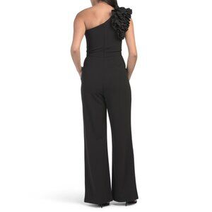 XSCAPE Black One Shoulder Crepe Jumpsuit