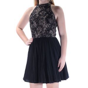 XSCAPE Black Pleated Skirt With Lace Halter Top Evening Cocktail Dress Sz 10 📦