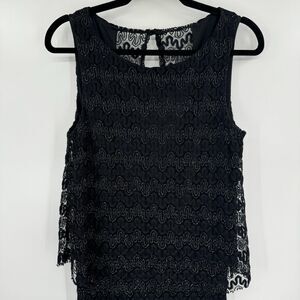 XSCAPE Black Silver Tiered Metallic Sleeveless Maxi Blouson Dress Gown Size 12
