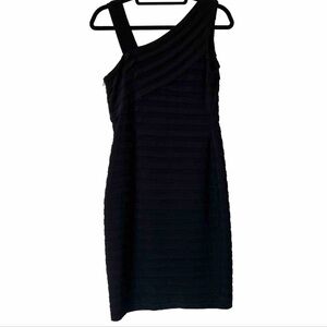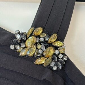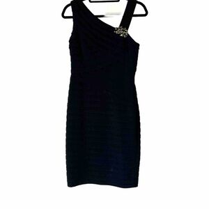 XSCAPE Bodycon Jeweled Bandage Style Pleated Cocktail Dress LBD Black size 10