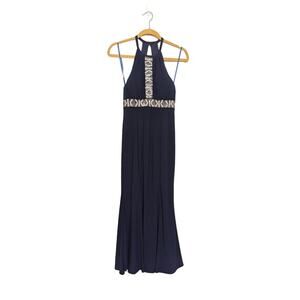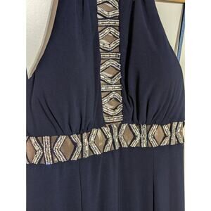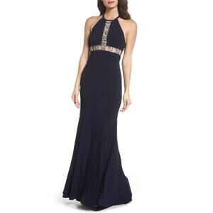 XSCAPE Crystal Embellished Halter Cut Out Dress Navy Blue Womens 8 Prom Formal