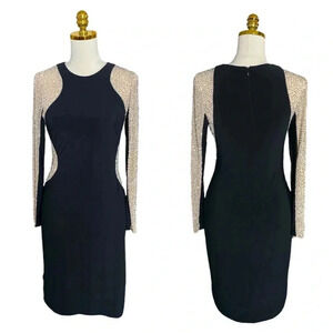 XSCAPE | Crystals Embellished Mesh-Trimmed Sheath Black Evening Dress Size 10