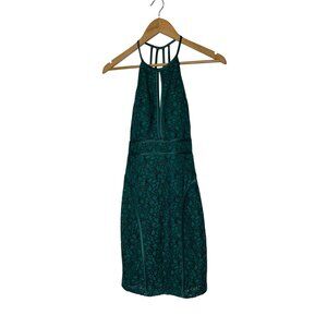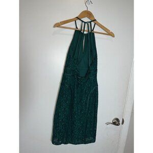 XSCAPE Emerald Green Lace Halter Cocktail Dress Keyhole Women Size 2
