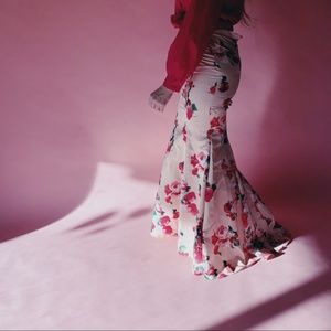 XSCAPE Floral Mermaid Layered Maxi Skirt XS8474
