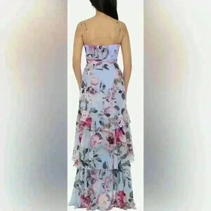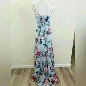 XSCAPE Floral-Print Ruffled High-Low Sleeveless Gown Size 2