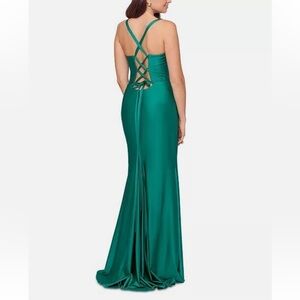 Stunning green evening gown perfect for special occasions. Features a sleek design for a sophisticated look.